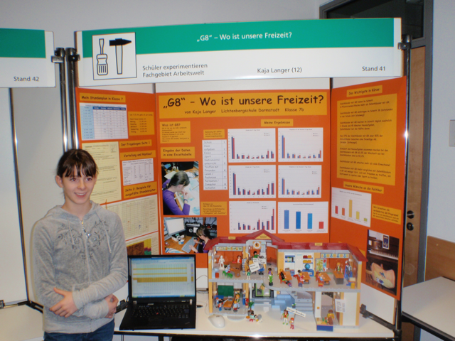 "G8" - Wo ist unsere Freizeit? --- Schüler Experimentieren 2010Als ich nach den Sommerferien meinen neuen Stundenplan für die Klasse 7 bekommen habe, war ich schockiert. 39 Unterrichtsstunden in der Woche und vier Nachmittage in der Schule. Schon nach der ersten Woche war ich ganz verzweifelt, und hatte das Gefühl, die Anforderungen nicht mehr zu schaffen. Nach zwei, drei Schulwochen wollte ich meinen Klavierunterricht aufgeben, um wenigstens etwas Pause nach einem langen Schultag zu haben. Meine Mutter und der Klavierlehrer ermutigten mich, weiter zu spielen und die täglichen Übungszeiten den Hausaufgaben und Lernzeiten für die Schule anzupassen. Nach elf Unterrichtsstunden und anschließenden Hausaufgaben schaffe ich es oft gar nicht mehr, noch das Instrument zu üben, sondern falle erschöpft ins Bett. Bis zum Beginn der Herbstferien hatten meine Freundinnen und ich keinen einzigen gemeinsamen freien Tag, an dem wir uns zum Spielen verabreden konnten. Der Tag des Ferienbeginns war der einzige Tag, an dem wir uns getroffen haben. Eigentlich habe ich weder für eine AG in der Schule noch für die Teilnahme an Wettbewerben Zeit, aber ich habe mich entschlossen zu untersuchen, wie viel Freizeit uns Siebtklässlern mit „G8“ noch bleibt. Mit genaueren Zahlen kann ich Erwachsenen und vielleicht auch Politikern von unseren Schwierigkeiten berichten und sie eher von der Notwendigkeit überzeugen, das Programm „G8“ zu ändern. Ich habe einen Fragebogen entworfen, den ich an Kinder in verschiedenen 7. Klassen meiner Schule und an Siebtklässler anderer Gymnasien verteilt habe. Außerdem möchte ich unsere Freizeit mit der von Zehntklässlern ohne „G8“ vergleichen, daher sollen auch Zehntklässler unserer Schule den Fragebogen ausfüllen. Ich hoffe, dass ca. 100 Kinder meinen Fragebogen ausgefüllt zurückgeben, dann kann ich die Weihnachtsferien nutzen, um die Ergebnisse auszuwerten. Kaja Langer(12) letzte Änderung: 01.03.2010 |