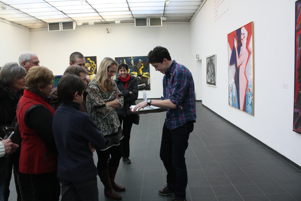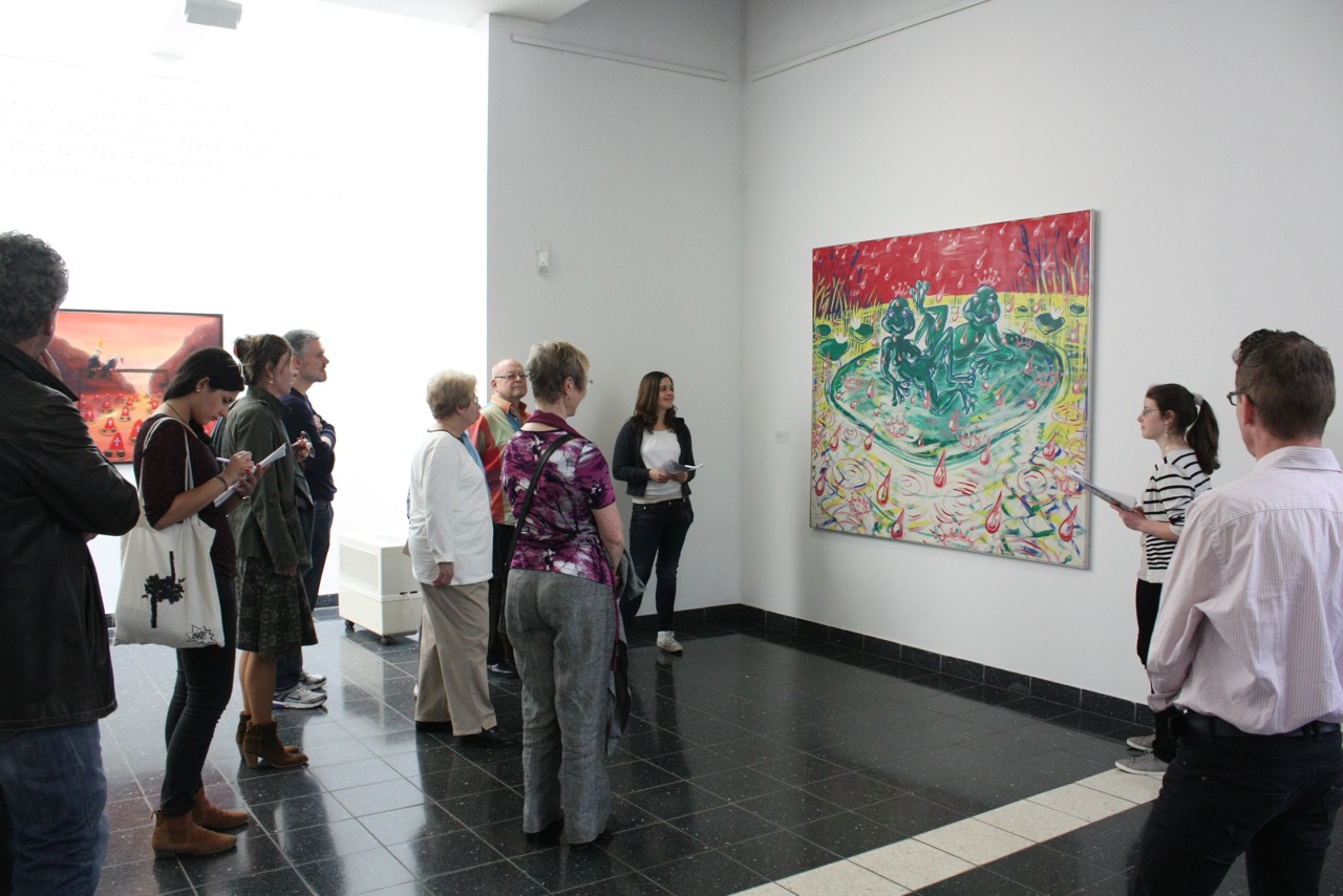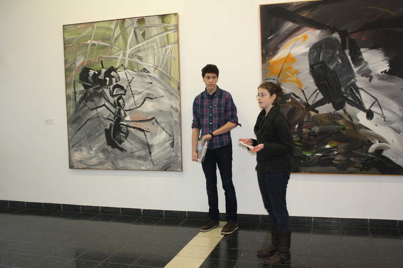 Jugendliche als Kunstvermittleroder: wie aus LiteraTeens MuseumsGuides wurden...Ein neues FormatEine Kooperation der AG LiteraTeens mit dem Hessischen Landesmuseum Darmstadt (HLMD), mit der Schader-Stiftung und mit der Kunsthalle Neuer Projektname ab 2013: MuseumsGuides Angefangen hatten einige TeilnehmerInnen der LiteraTeens-AG von Frau Sachse schon 2009 mit der gegenseitigen Präsentation von Buchrezensionen, Kino- und Theaterkritiken. Es folgten schulinterne Projekte, Exkursionen, Radio-Produktionen und Internet-Publikationen (für die LuO-Hompage und www.lesepunkte.de), bei denen es immer darum ging, eigene Standpunkte fundiert, gut begründet und pointiert zu vermitteln. Aufgrund einiger Anfangserfolge wollten die TeilnehmerInnen der AG mehr Verantwortung übernehmen, gestalteten Autorengespräche mit Peter Härtling und Mirjam Pressler und entdeckten über ihre Tätigkeit als Anne-Frank-Guides auch das Museum und andere Orte der Stadt Darmstadt als Bühne für ihre kulturelle Praxis. Dabei entwickelte sich ein besonderer Schwerpunkt im Bereich historischer Projekte "Gegen das Vergessen". Einige Schülerinnen durften - unterstützt durch die Bürgerstiftung - sogar als Junior-Botschafter die Stadt vertreten. Eine dauerhafte Kooperation mit dem Verein "Gegen Vergessen - für Demokratie" entstand, wodurch historisch-politische Projekte, Fahrten, Expertenvorträge und Zeitzeugengespräche an der LuO an Intensität gewannen. ![]() In Kooperation mit Herrn Dr. Lutz Fichtner, dem Leiter der Abteilung "Bildung und Vermittlung" am HLMD, konnte ein neues Format für engagierte SchülerInnen entwickelt werden, die ihre sozialen, personalen, fachlichen und sprachlichen Kompetenzen im Museum unter Beweis stellen wollen. Wegen der langjährigen Schließung des Landesmuseums begannen die Kunstvermittler mit Pilotprojekten in der Kunsthalle und in der Schader-Galerie. Wegen des großen Erfolges soll das Format "Jugendliche Vermittler" im Rahmen der Wiedereröffnung des HLMD fortgeführt werden. Aus den anfänglichen Literaturvermittlern der AG LiteraTeens ist inzwischen das schulübergreifende Format MuseumsGuides geworden. Bei Bedarf nehmen die SchülerInnen auch Stadtrundgänge in ihr Programm auf. Sie betätigen sich somit nicht mehr nur als Literatur- und Kunstvermittler, sondern eher als Kulturvermittler, was allen Beteiligten sehr viel Freude bereitet. Über die schulinterne AG der Lichtenbergschule hinaus treffen sich die MuseumsGuides im Schuljahr 2013/14 mit weiteren Guides aus anderen Darmstädter Schulen. Betreut werden die MuseumsGuides seit August 2012 von den drei teilabgeordneten LehrerInnen Lars Harres (LIO), Margit Sachse (LUO) und Dr. Simone Twiehaus (GCLS Ober-Ramstadt)sowie von Dr. Lutz Fichtner vom HLMD. EINIGE VON DEN KUNSTVERMITTLERN/MUSEUMSGUIDES DURCHGEFÜHRTE FÜHRUNGEN: Am Sonntag, den 29.4.2012 führten Janna Schmidt und Theresa Seel durch die Ausstellung "Schlachtpunk - Malerei der Achtziger Jahre" in der Kunsthalle. Ziel war es, die eigene Altersgruppe sowie regelmäßige Museumsbesucher ungezwungen an moderne Kunst heranzuführen. In dieser Ausstellung boten die Themen Punkmusik und Malerei spannende Ausgangspunkte, um miteinander ins Gespräch zu kommen. Auf folgender Seite der Uni Köln kann ein Bericht von Janna Schmidt über ihre Erfahrungen als Kunstvermittlerin in der Ausstellung zur Punkbewegung gelesen werden: https://www.lesepunkte.de/persistent/artikel/9681 Impressionen von der ersten Führung von Jugendlichen (Jason Richter und Janna Schmidt) durch die Kunsthalle: Verantwortlich: Margit Sachse ("Lernen an außerschulischen Lernorten" an der LuO) und Dr. Lutz Fichtner ( "Bildung und Vermittlung" am HLMD) Zum Archiv |