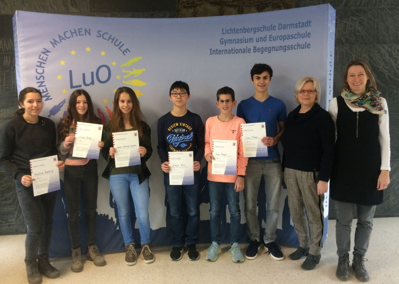 Besonders herauszuheben sind Anja Henniger aus der 6. Klasse und Julius Schuchert aus der E-Phase, die sich aufgrund ihrer exzellenten Leistungen für die nächste Runde des Wettbewerbs qualifizieren konnten. Bei dieser Landesrunde, die im Februar stattfindet, können sie sich dann zusammen mit den besten Teilnehmern aus ganz Hessen neuen Aufgaben stellen. Herzlichen Glückwunsch und viel Erfolg!