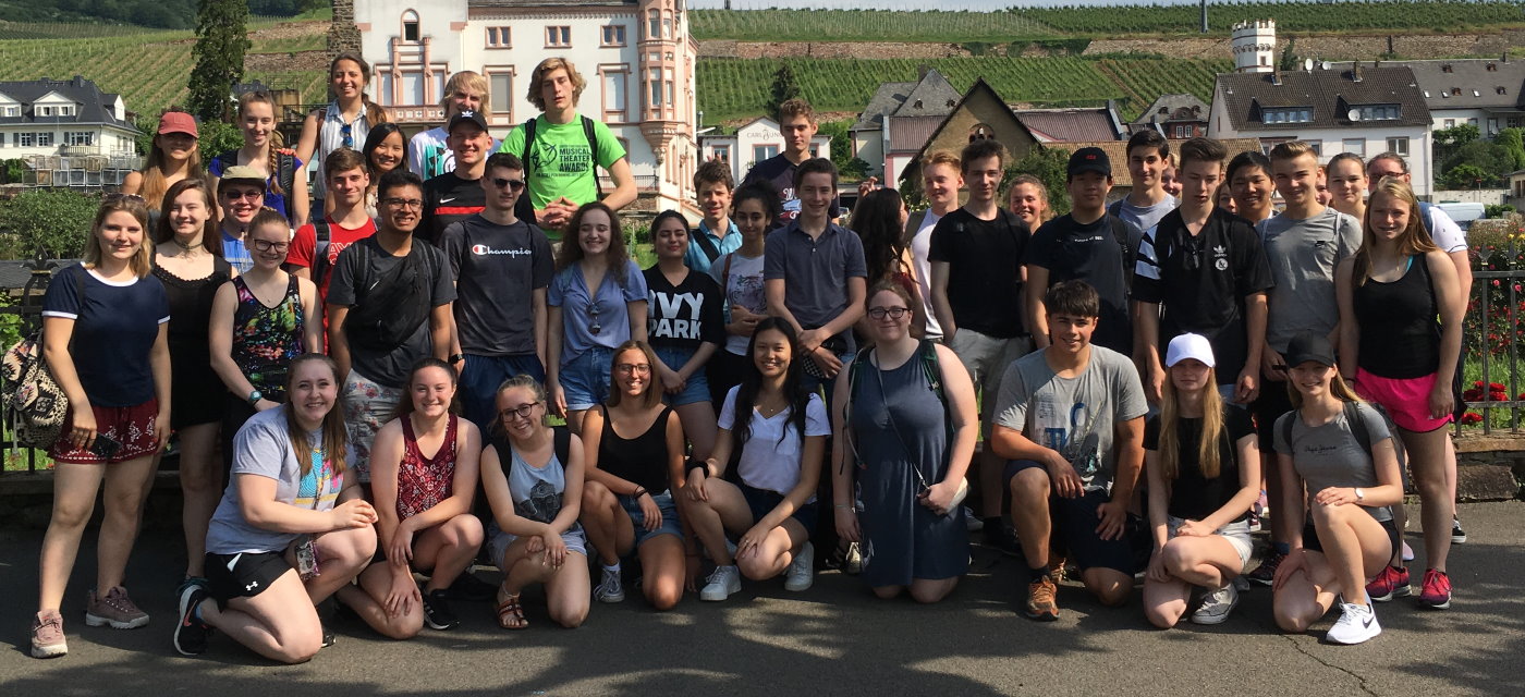 Nach diesem entspannten Nachmittag sollte am nächsten Tag direkt das Programm beginnen und wir besuchten die Stadt Rüdesheim im Rheingau. Die Stadt ist bekannt für ihren tollen Wein, ihre herrliche Idylle und natürlich ihre Lage am Rhein. Dort angekommen besuchten wir das Niederwalddenkmal, das Jagdschloss Niederwald und die Burg Rheinstein. Wie sich herausstellte war dies eine ganz neue Erfahrung für unsere Austauschpartner, denn in der USA sind solche alten Gebäude nicht vorhanden.